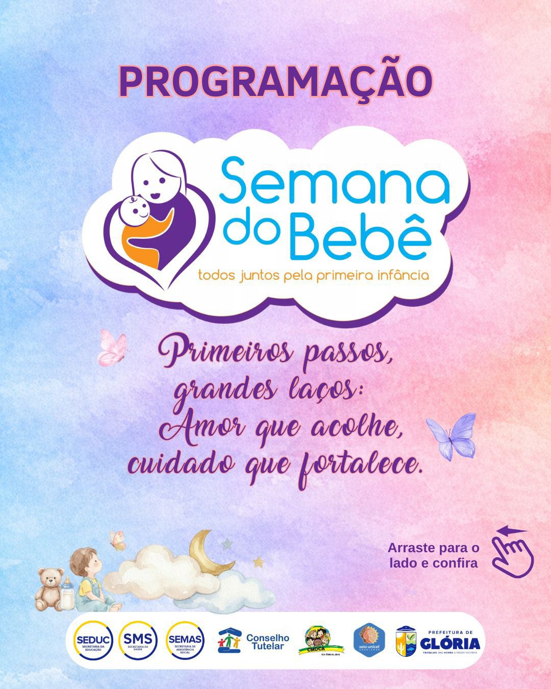 A Prefeitura de Glória dá início, nesta segunda-feira (13), à programação da Semana do Bebê 2026, uma iniciativa que reforça o compromisso do município com o cuidado, a proteção e o desenvolvimento integral das crianças na primeira infância.